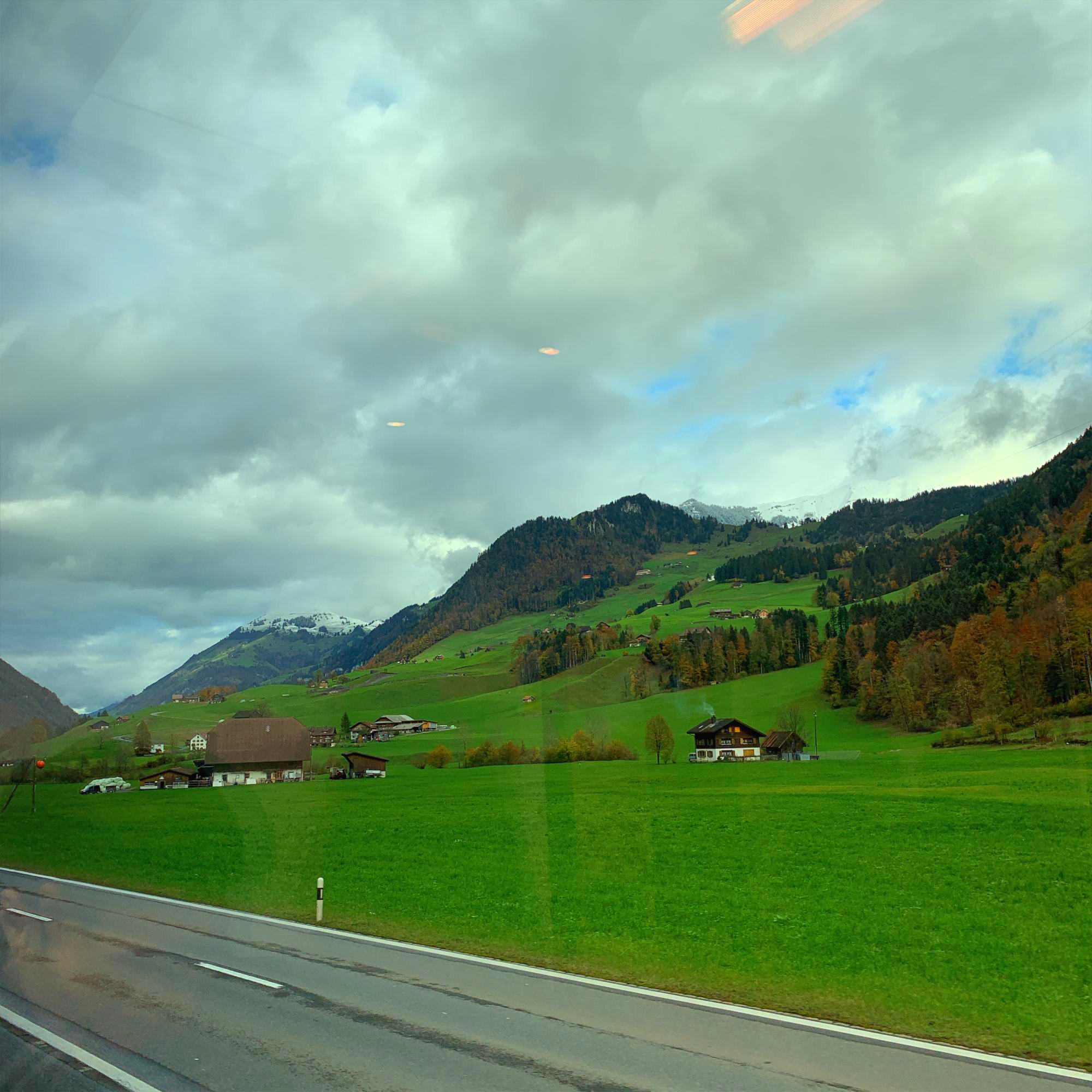 ๊ธฐ์ฐจ์์ ๋ด๋ฆฌ๋ ์ค์์ค ์ฐ๋งฅ์ด ๋ณด์์ด์