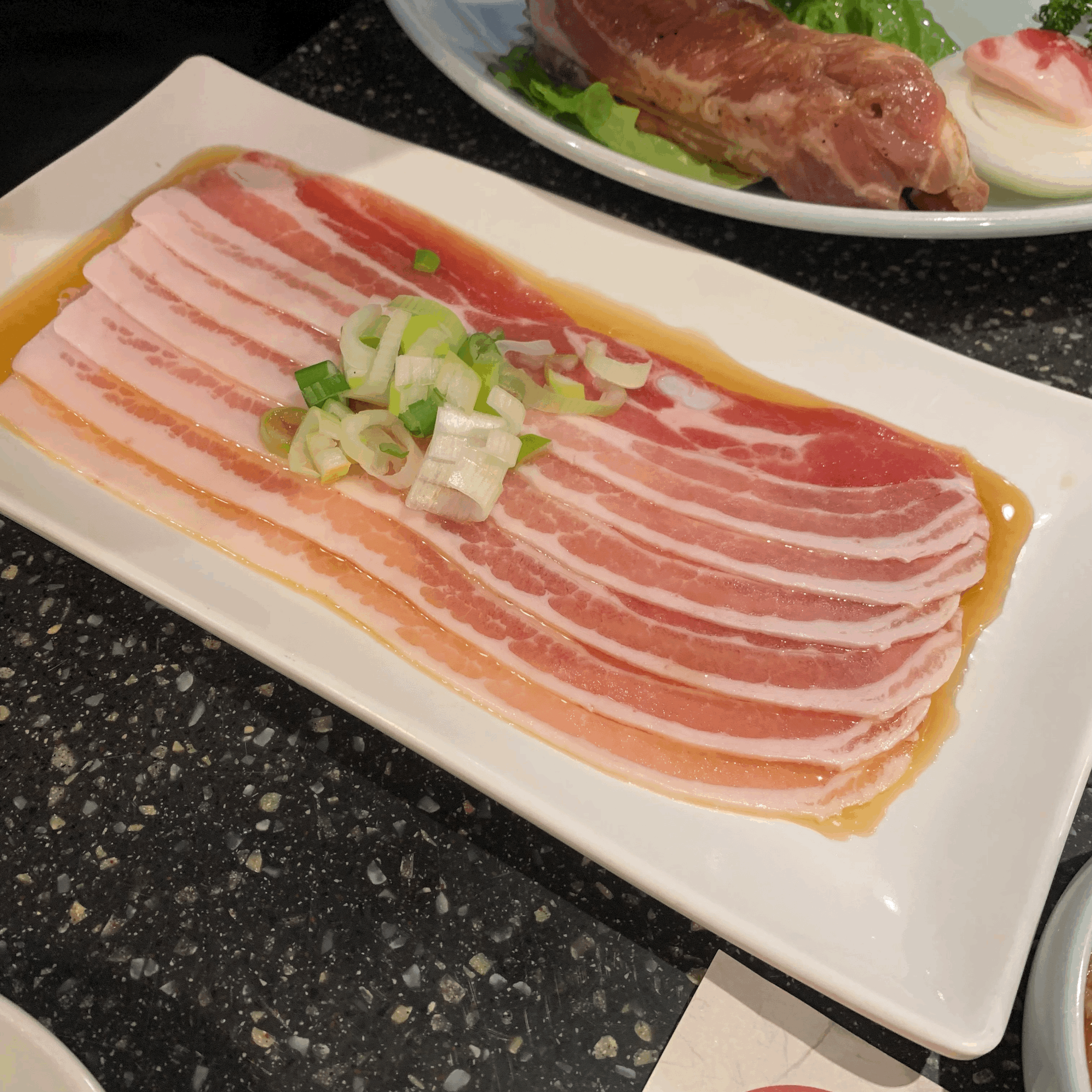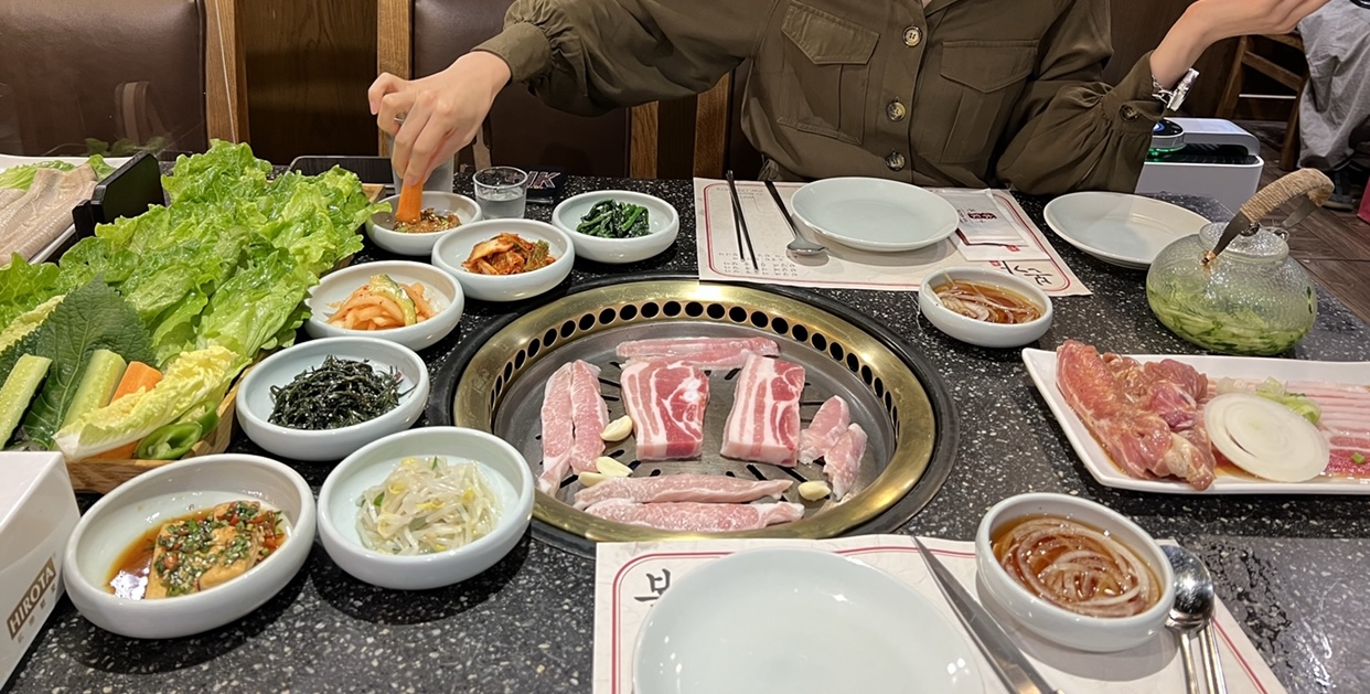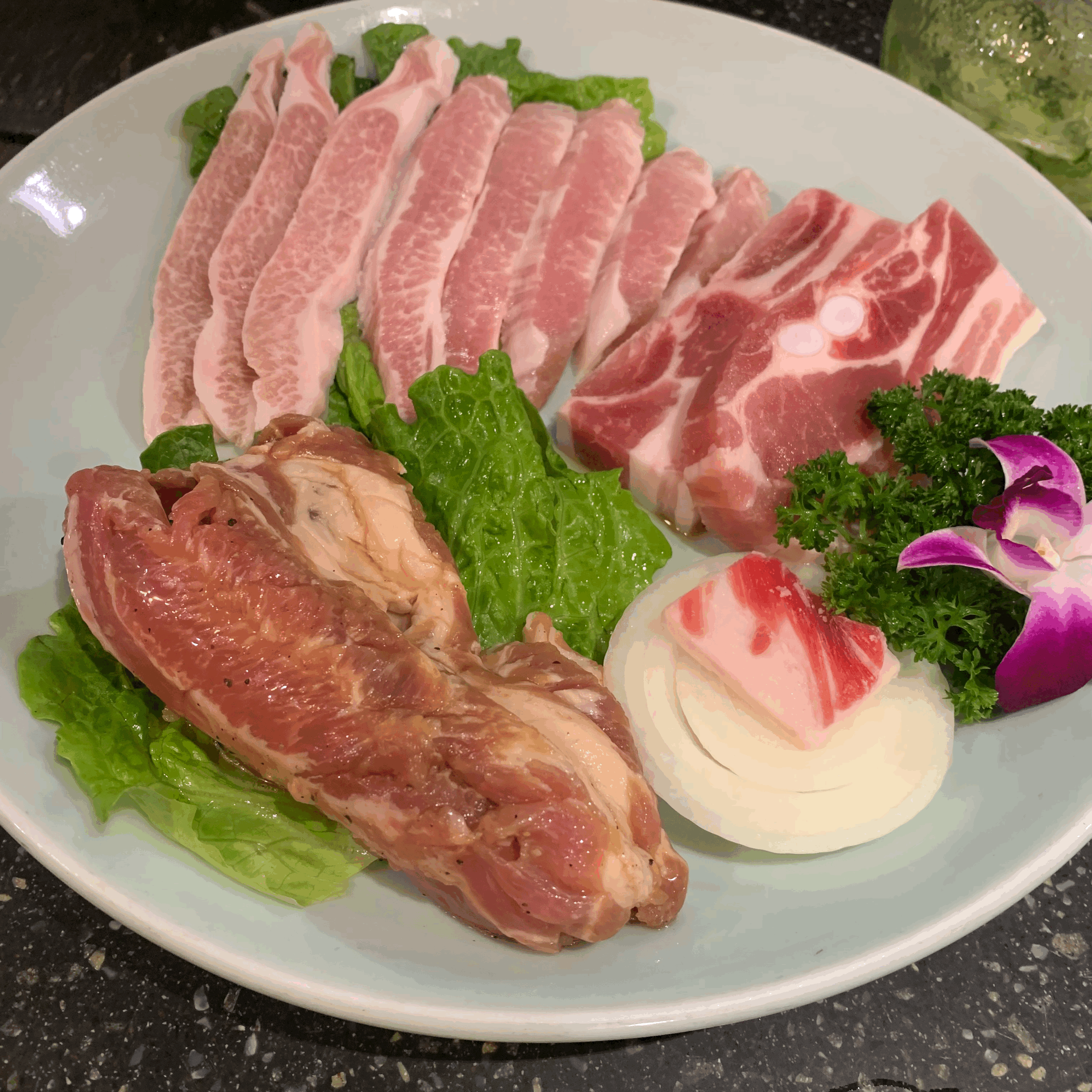 ๋ผ์ง๊ณ ๊ธฐ ๋ชจ๋ ์ ์ฃผ๋ฌธํ๋ฉด ์ผ๊ฒน์ด๊ณผ ๋ํจ์ผ๊ฒน์ด, ๋ผ์ง๊ฐ๋น, ํญ์ ์ด์ด ๋์จ๋ค. ์ผ๊ฒน์ด๊ณผ ํญ์ ์ด, ๋ผ์ง๊ฐ๋น๋ฅผ ๋จผ์ ๋จน๊ณ ๋์