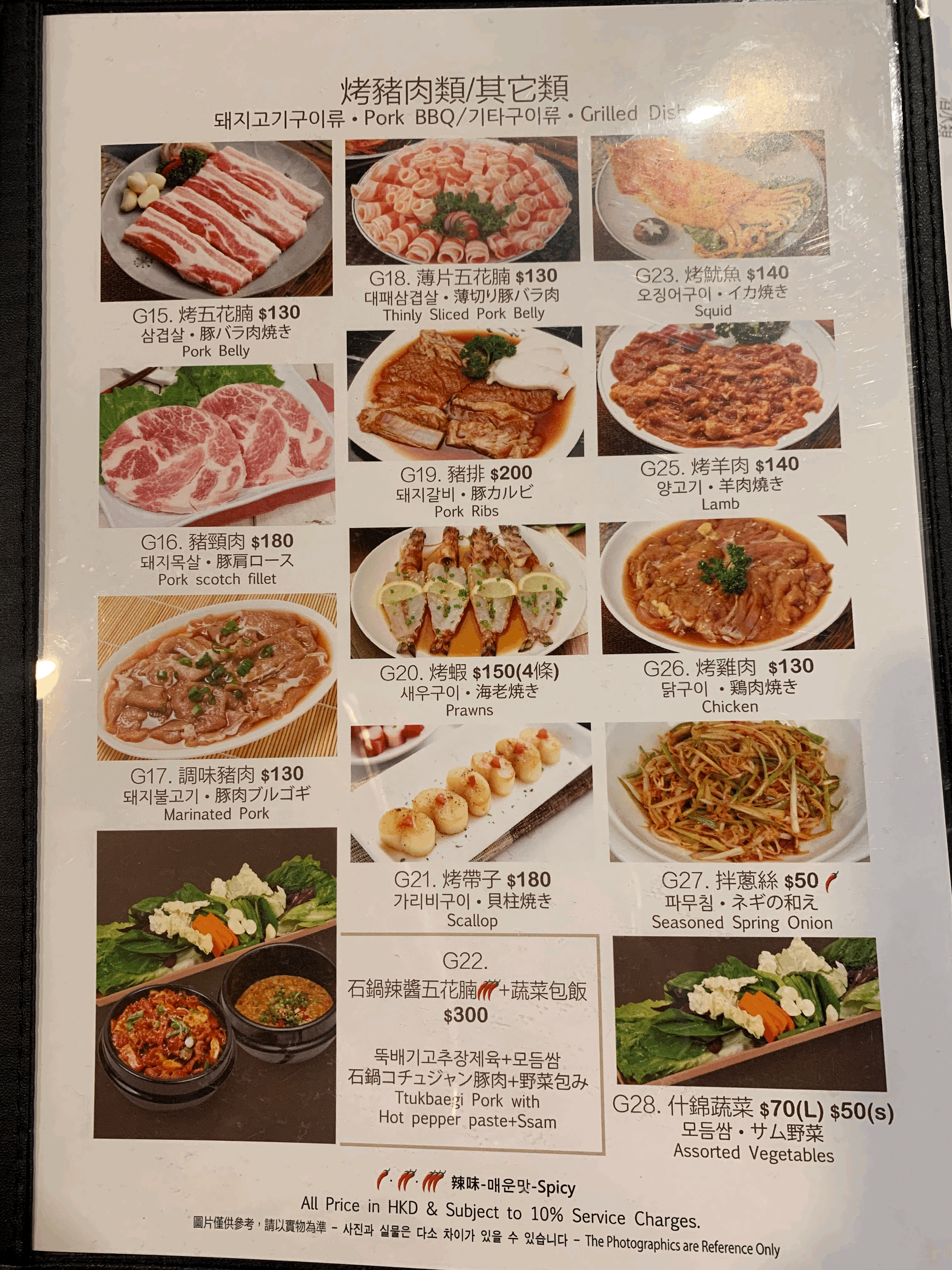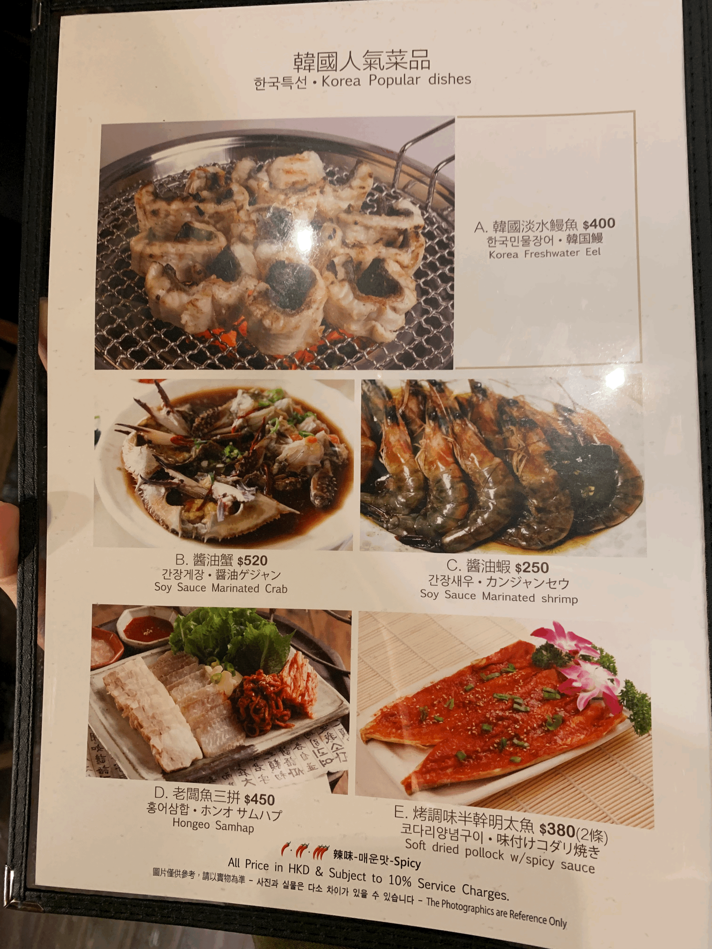 ์ ์ฌ๋ฉ๋ด๋ก๋ ์ฐ๊ฐ๋ฅ์ ํ๋ฅ, ๊ฐ๋น์ฐ, ๋๋ฉด, ๋น๋น๋๋ฉด, ์ง์ฅ๋ฉด, ๋์ฅ๋น๋น๋ฐฅ ๋ฑ์ ๋ค์ํ ์์ฌ๋ฅ๊ฐ ์๋ค. ๊ทธ ๋ฐ์๋ ์ฅ์ด, ๊ฐ์ฅ๊ฒ์ฅ, ๊ฐ์ฅ์์ฐ, ํ์ด, ์ ์ก๋ณถ์, ๊ณฑ์ฐฝ, ๋ถ์, ์กฑ๋ฐ, ๋ณด์, ์ฝฉ๊ตญ์ ๋ฑ ๋ค์ํ ๋ฉ๋ด๊ฐ ์๊ณ ์ด ์ค ์ธ๊ตญ์ธ๋ค์๊ฒ ํนํ ์ธ๊ธฐ๊ฐ ๋ง์ ๋ฉ๋ด๋ ๊ฐ์ฅ๊ฒ์ฅ๊ณผ ๊ฐ์ฅ์์ฐ๋ค. ํ ์ด๋ธ๋ง๋ค ํ๋์ฉ ๋ค ๊ธฐ๋ณธ์ผ๋ก ์ฃผ๋ฌธํด ๋๊ณ ๋จน๊ณ ์์.
