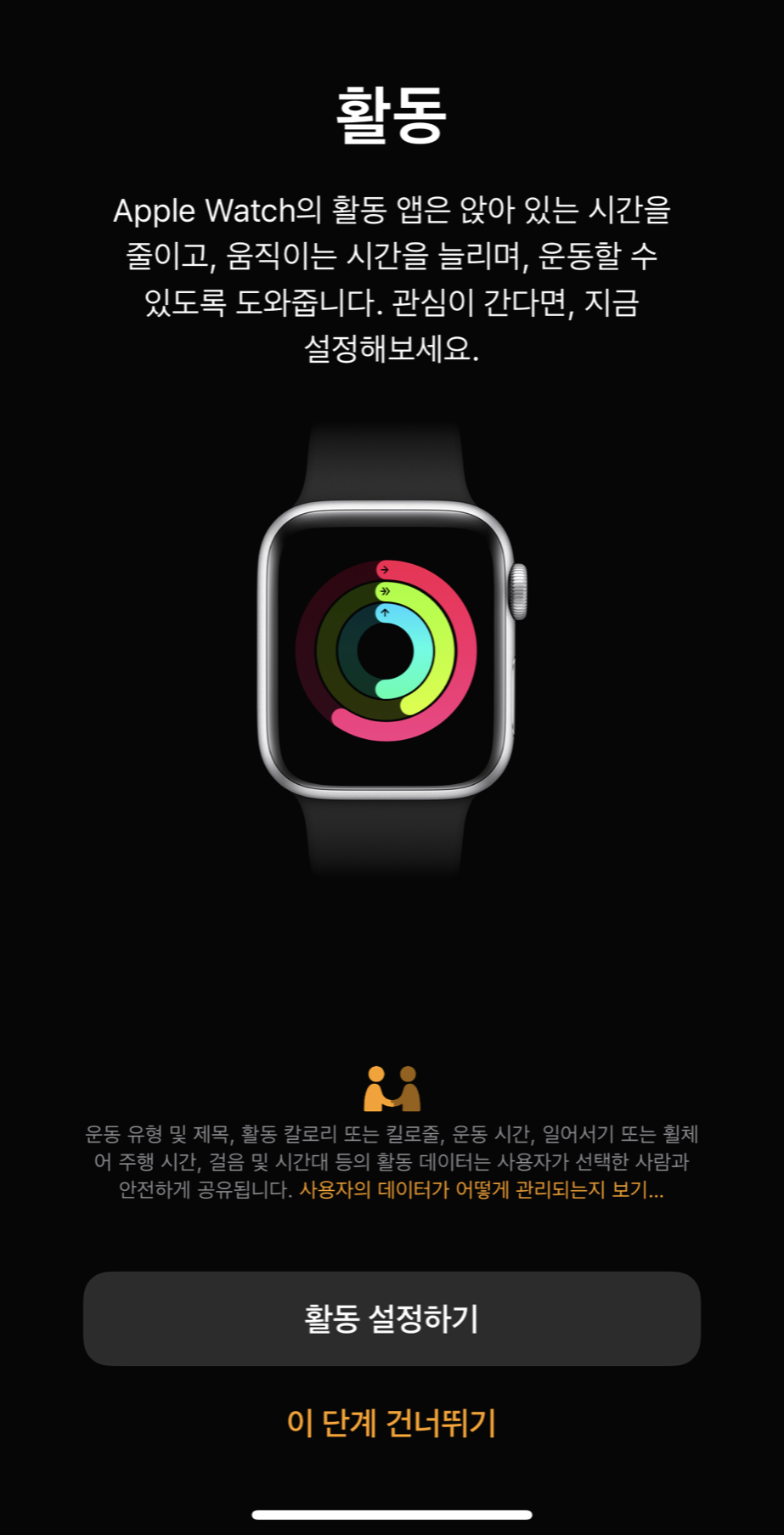 ์ ํ์์น ์ธ๋ฐ์ฑ์ด ๋๋ฌ์ผ๋ฉด ์ฌ์ฉํ๊ธฐ ์ ์ ์ด๋ฐ์ ๋ฐ ์ค์ ์ ํด์ค์ผ ํ๋๋ฐ์. ์์ดํฐ์ ๊ธฐ๋ณธ ์ดํ ์ค ํ๋์ธ Watch์ฑ์์ ๊ฐ์ข ์ค์ ๋ฐ ์๊ธ์ ๊ฐ์ ๊น์ง ๋ชจ๋ ๊ฐ๋ฅํฉ๋๋ค.