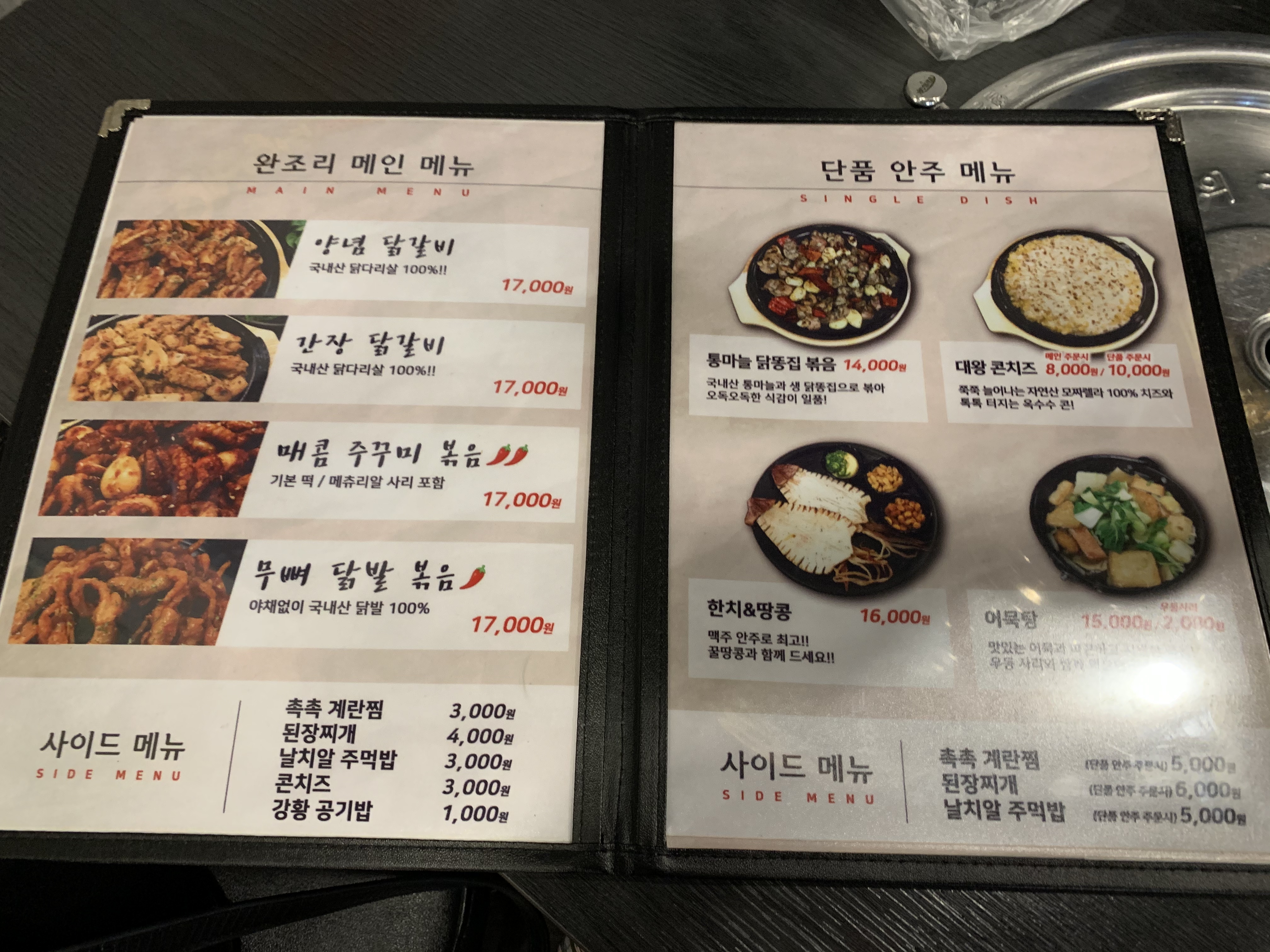 ๋ฉ์ธ ๋ฉ๋ด๋ค์ ํ๋ก์ ๊ตฌ์๋จน์ ์๋ ์์ง๋ง ์์กฐ๋ฆฌ๋ ์ํ๋ก ์ฃผ๋ฌธํ ์๋ ์์ด์. ์์กฐ๋ฆฌ ๋ฉ์ธ๋ฉ๋ด๋ ์๋ ๋ญ๊ฐ๋น์ ๊ฐ์ฅ ๋ญ๊ฐ๋น, ๋งค์ฝค ์ฃผ๊พธ๋ฏธ ๋ณถ์, ๋ฌด๋ผ ๋ญ๋ฐ ๋ณถ์์ด ์์ต๋๋ค. ๊ตฝ๊ธฐ ๊ท์ฐฎ์ ๋๋ ์์กฐ๋ฆฌ ๋ฉ๋ด๋ฅผ ์ฃผ๋ฌธํ๋ฉด ๋ ๊ฒ ๊ฐ์์. ์์ฃผ ๋ฉ๋ด๋ ํต๋ง๋ ๋ญ๋ฅ์ง ๋ณถ์๊ณผ ๋์ ์ฝ์น์ฆ, ํ์น&๋ ์ฝฉ ๊ทธ๋ฆฌ๊ณ ์ด๋ฌตํ์ด ์์ด์. ๋ฉ๋ด ๊ตฌ์ฑ์ด ์์ฃผ ํ ์ ํ๊ธฐ ์ ๋ง ์ข์ ๊ตฌ์ฑ์ธ ๊ฒ ๊ฐ์์.