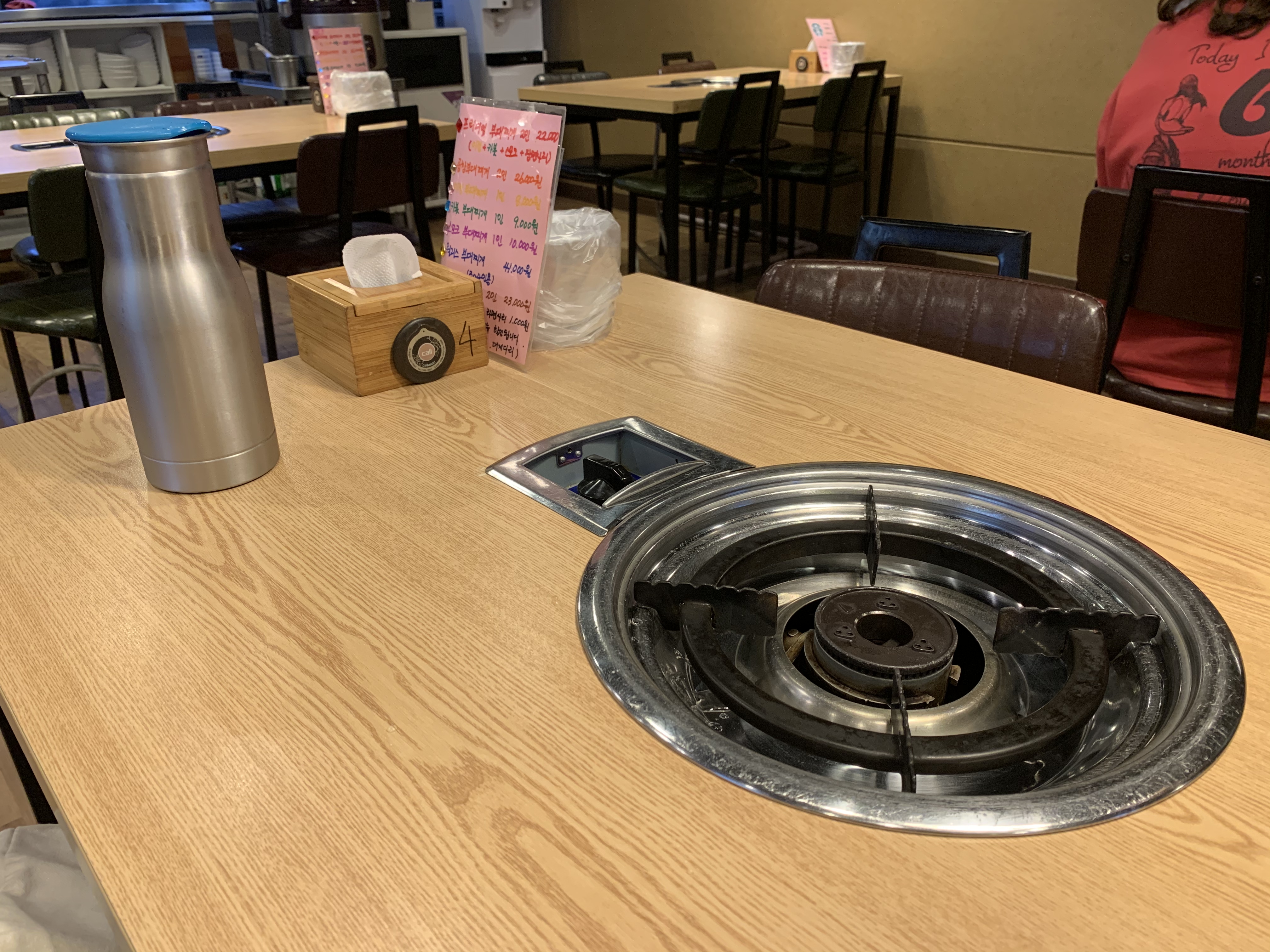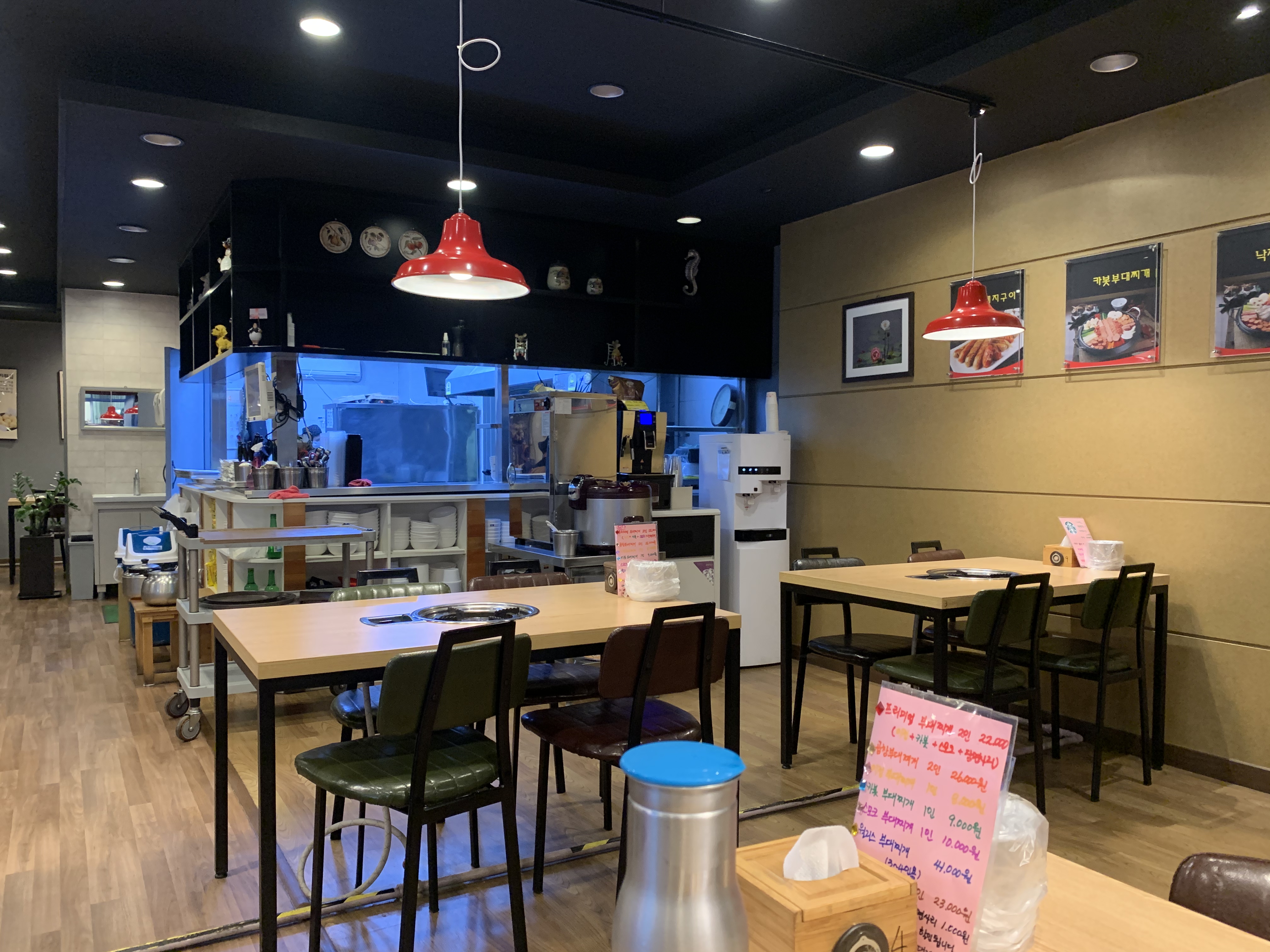 ์์ ๊ฐ ์ด๋ ๊ฒ '์์ฌ์๋น'์ด๋ผ๊ณ ์ ํ์ง ์ข ์ด์ ๋ด๊ฒจ ๋์์. ์์ฌ์๋น์ '๋์ด๋จน๊ธฐ ๊ฐ๋ฅํ ๋๊ตฌ ๋น์น, ์ ๊ณต', '์์์ ์์ ๊ด๋ฆฌ', '์ข ์ฌ์ ๋ง์คํฌ ์ฐฉ์ฉ'์ ์ค์ํ๋ ๊ณณ์ผ๋ก ์์ฌ์ง ์ง์์ฒด์ ์ธ์ฆ์ ๋ฐ์ ์์์ ์ด๋ผ๊ณ ํด์. ๋ฒ๋๋ ์ธ๋์ ์ด ์๋ ํ ์ด๋ธ ์ผ์ฒดํ ๊ฐ์ค๋ฒ๋์ ์ฌ์ฉํ๊ณ ์์ด์. ๋ถ์ฐ๋ ์ธ๋์ ๋ณด๋ค๋ ์ผ๋ถ์ ํํ ๋์ฌ๋จน๋ ๋ง์ด์ฅฌ.