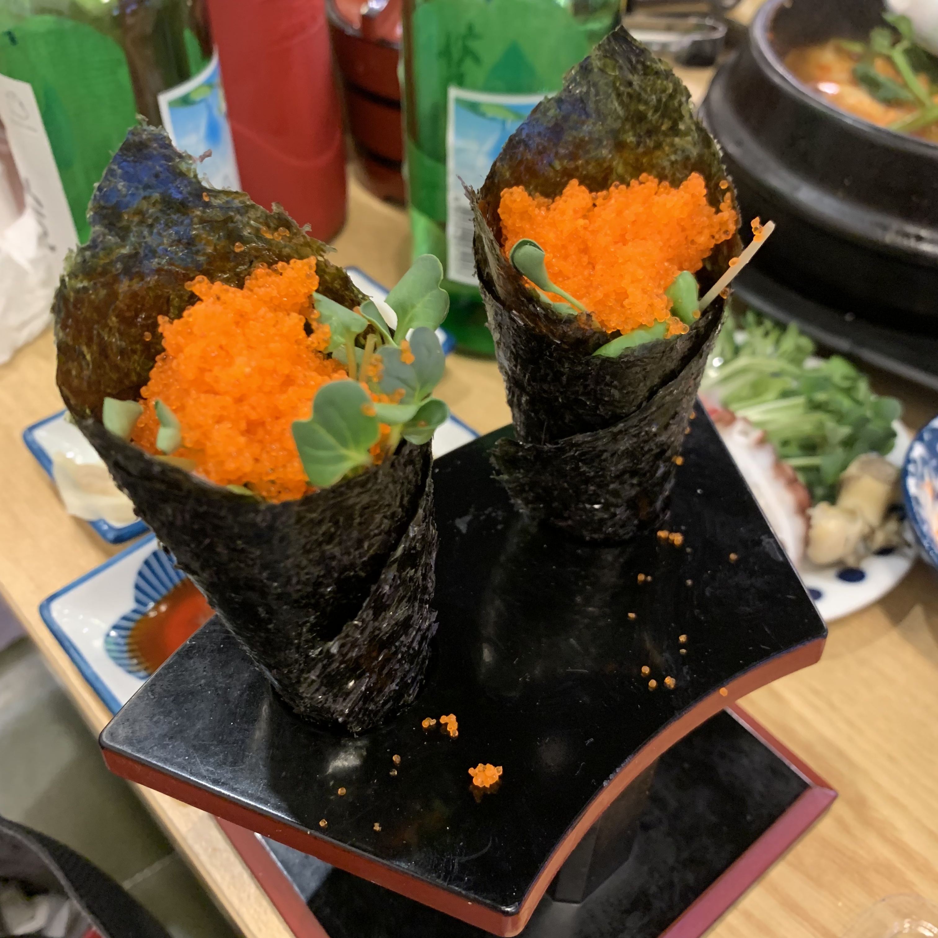 ํ ์ด๋ธ์๋ ์์ ์์ ๋ ํจ, ๊ฐ์ฅ, ๋ฝ๊ต, ์ด์๊ฐ์ด ์ค๋น๋์ด ์์ด์. ๊ฐ์ฅ์ ์์ฌ๋น ํ์ด์ ๋ง์ด๋ค ๋์์ฃ ? ์ด์๊ฐ ๋ด๊ถ๋๋ค๊ฐ ์ด์ง์ฉ ํ์ ๊ณ๋ค์ฌ ๋จน์ด๋ณด์ธ์ ๋ง์์ต๋๋ค.